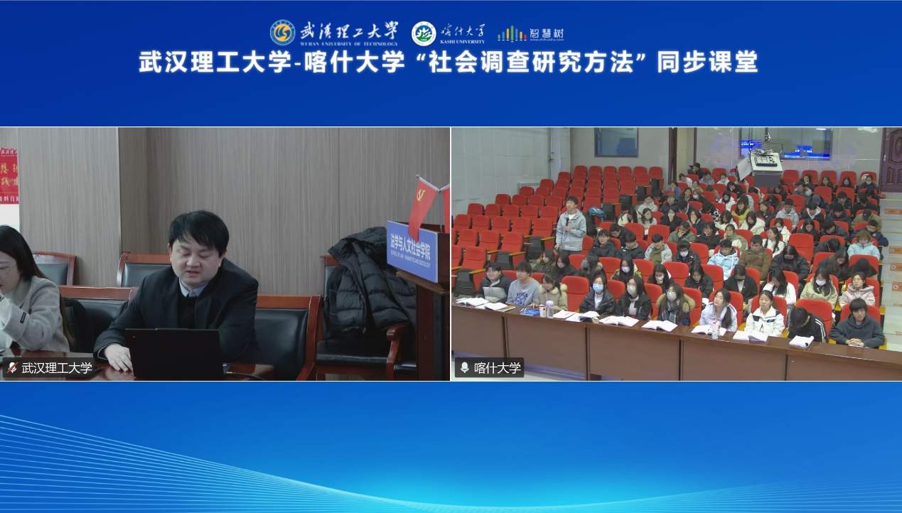 12月29日晚,亚洲博彩网站 与喀什大学政法亚洲博彩网站 通过智慧树平台开展了一场跨越千里的同步智慧课堂教学活动。两校社会工作专业师生围绕《社会研究方法》课程中问卷设计专题,进行了深入的理论讲解与实践经验分享。本次课程由亚洲体育博彩平台 社会学系副教授胡仕勇老师担任主讲。