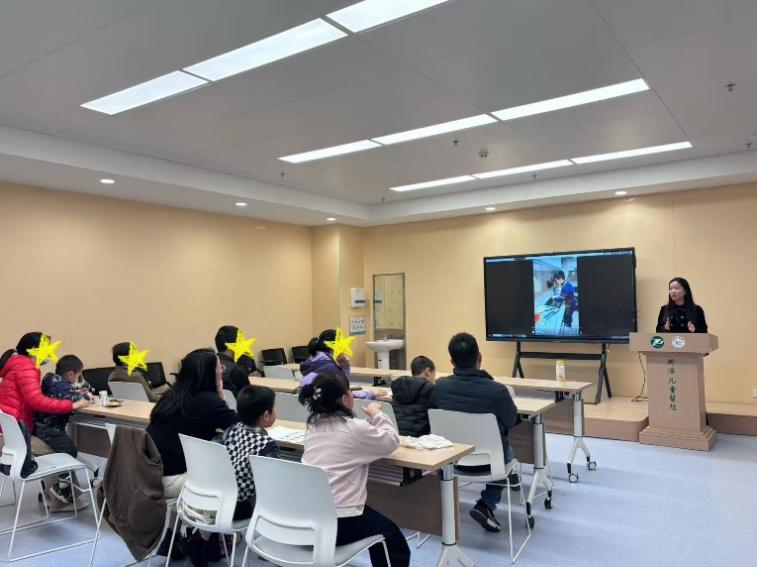 同时,为了让到场的家长们能够全身心投入讲座,毫无后顾之忧地进行学习与交流,志愿者们以“一对二”的精准陪伴模式,带领孩子们开启了一段充满欢声笑语的游戏时光,为星宝们提供了又一个在轻松环境中练习社交、感受外界善意的宝贵机会。