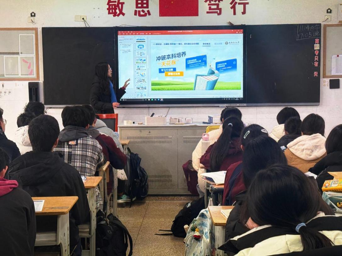 在步入大学后的首个寒假,团支部潘世璐同学进行了主题为“江情筑梦,遇见理工”的母校行宣讲活动——作为武汉理工大学学子回访吴江中学,面向高三师生进行分享。在活动过程中,潘世璐同学汇报了个人在校成长风貌,同时分享高考复习、心态调节等实用经验,并解读学校招生计划与优势,讲解资助政策打消经济顾虑。活动在传统宣讲基础上,融入江苏招生数据与文创互动,内容详实且针对性强。现场师生反馈热烈,不少学弟学妹对学校产生浓厚兴趣并咨询报考细节。后续潘世璐同学还结合收集的建议,补充就业案例、校园活动等内容优化材料,分享给其他宣讲同学,助力更多学子了解武汉理工大学、圆梦理想院校。