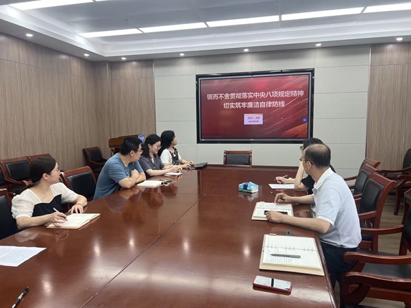 会议首先由吴露副院长给与会人员上了主题为“锲而不舍贯彻落实中央八项规定精神,切实筑牢廉洁自律防线”的党课,她围绕中央八项规定精神的内涵和意义、违反中央八项规定的典型案例和锲而不舍贯彻落实中央八项规定精神几个方面进行了阐述。她指出,贯彻落实中央八项规定精神必须坚持零容忍,保持高压态势,以钉钉子的精神防治“四风”问题,强化全面从严治党政治责任。