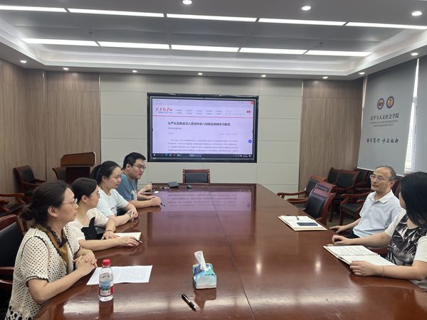 6月26日下午,亚洲博彩网站 机关教工党支部在弘毅楼907开展党员基本培训第一课的交流学习暨“弘扬三大精神”学习主题党日活动。本次会议由党支部书记胡莹同志主持,支部全体党员参加。