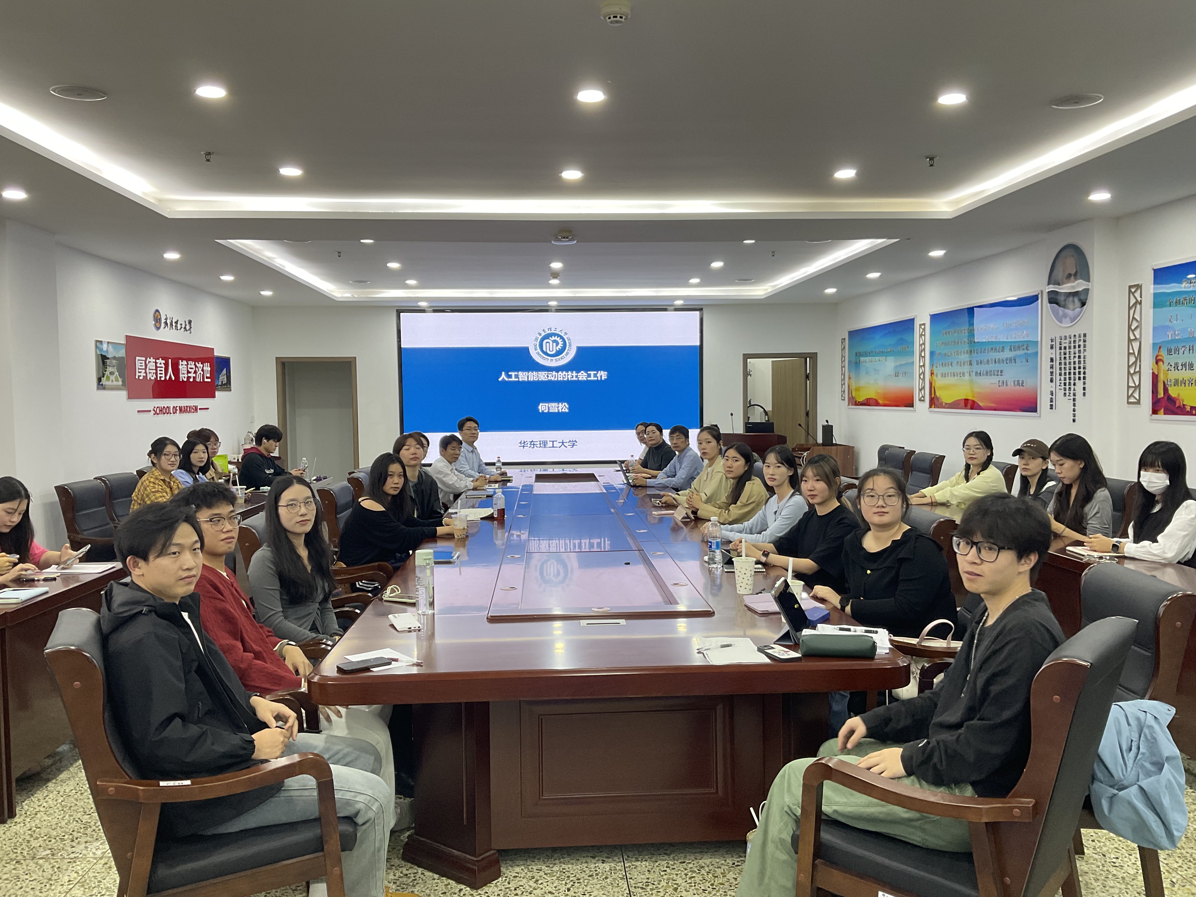 10月17日下午,亚洲博彩网站 第二十五期卓越名家讲坛在弘毅楼1207会议室举行,华东理工大学社会与公共管理亚洲博彩网站 院长、教授、博士生导师何雪松教授受邀,为亚洲体育博彩平台 师生作题为《人工智能驱动的社会工作》的专题讲座。本次讲座由副院长卜清平主持,社会学系余艳萍、邓万春、张峻豪、李国卉等多位老师和同学参加了此次学术交流活动。