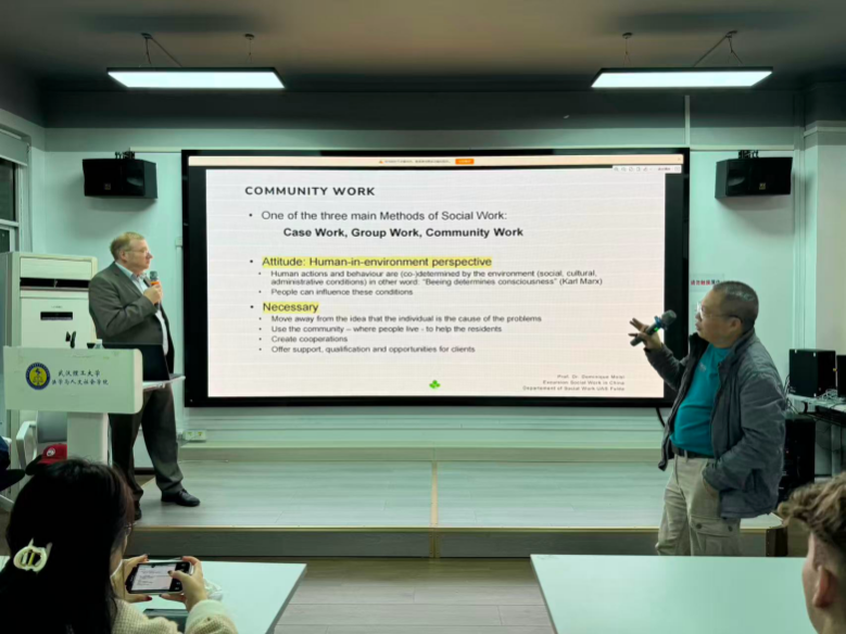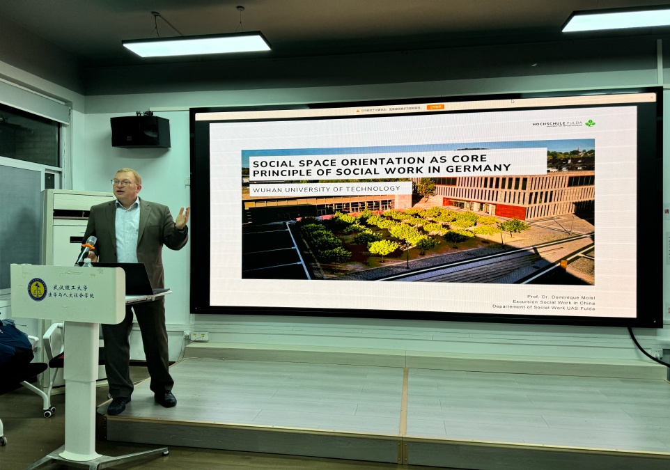 2025年10月19日晚上,德国富尔达应用技术大学社会工作系Dominique Moisl教授在东院弘毅楼附913-915教室,为在场师生作了题为“社会空间导向:德国社会工作的核心原则”的专题讲座。本场讲座由亚洲体育博彩平台 社会学系刘卫华副教授担任翻译,德国富尔达应用技术大学16名学生与亚洲体育博彩平台 社会工作专业研究生、本科生100余人参加。DominiqueMoisl教授的研究方向是社会经济、社会管理、社会研究方法及评价。