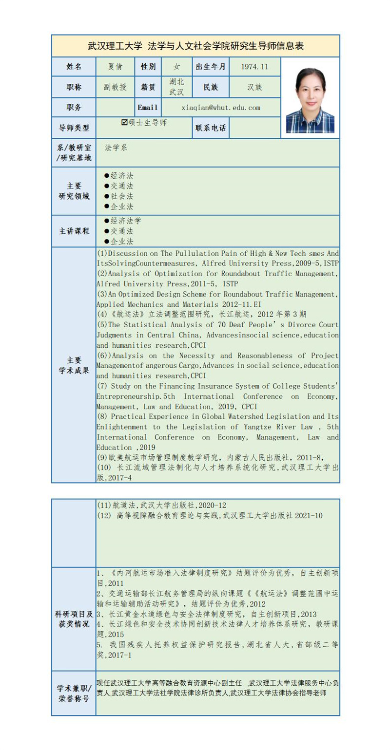 夏倩 副教授简介