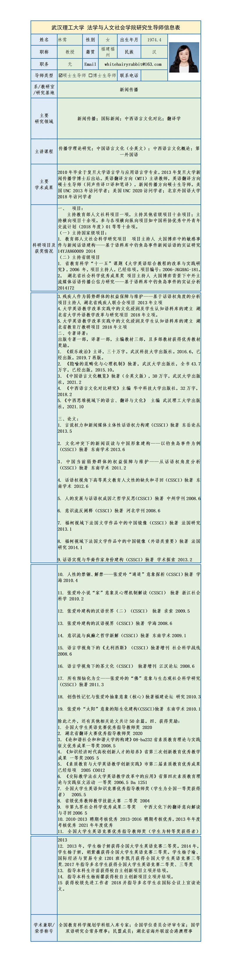 林莺 教授简介