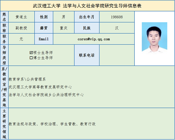 黄道主 副教授简介