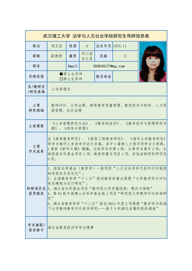 周玉容 副教授简介