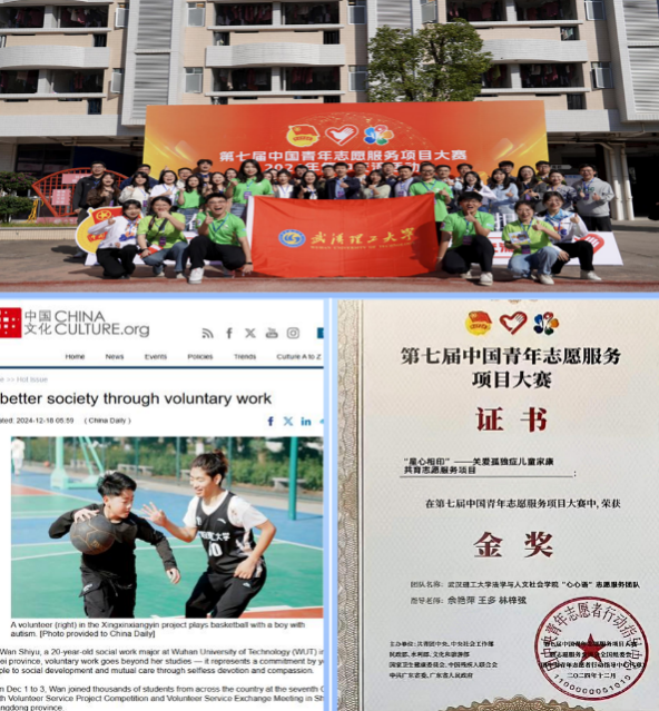 “星心相印”项目由社会学系主任余艳萍、团委书记林梓弦老师指导,聚焦孤独症儿童及其家庭,构建“校社共筑”的社区支持生态圈。以“星合作-星互动-星能量-星休憩”为支柱,系统提升家庭赋能水平,营造残健融合的社区环境,促进孤独症群体的社会融合与价值实现。项目通过喘息服务缓解家庭压力,依托线上平台与线下社群传递康复知识,构建可持续家庭支持网络。利用“家庭-社区-高校”联动机制,将专业支持融入日常生活,为孤独症儿童提供低风险社交实践,促进社区居民的理解与接纳。项目已在武汉联合多个社区开展公益活动近千场,累计服务数千名儿童及家庭,获湖北省政府、志愿者协会及九三学社等官方机构高度评价,形成可复制、易推广的社区服务经验。