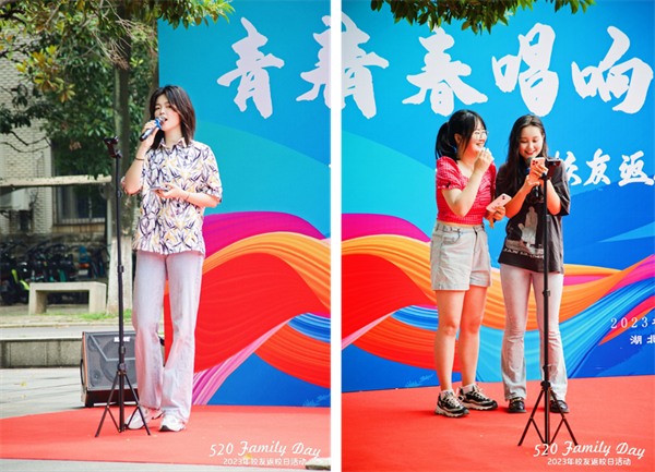 活动在马房山校区东院弘毅楼正门前广场举行,10余名在校学生分时段为校友们唱响青春之歌,《同桌的你》、《等你下课》、《凤凰花开的路口》、《星辰大海》等一首首青春之歌在校园里回响,引得返校的校友们纷纷驻足聆听,还有校友现场点歌、上台演唱,在歌声中共同回忆在母校青春奋斗的岁月,永葆对母校的热爱与深情。